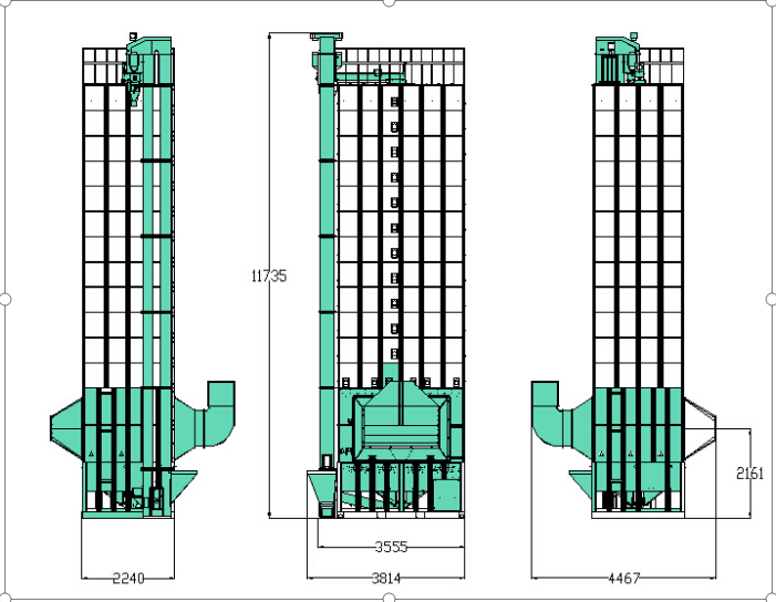 2. 強(qiáng)制分散裝置及多支排糧輪定量下料循環(huán),薄層大風(fēng)量,谷物干燥均勻,干燥效率高。