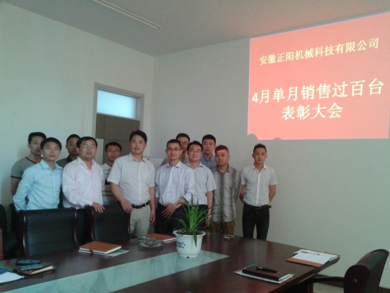 2015年5月3日上午在公司二樓會議室召開銷售部2015年第一季度工作總結會議及四月單月銷售過百臺表彰大會,公司總經理張為法、副總經理許為青等參加了本次會議。